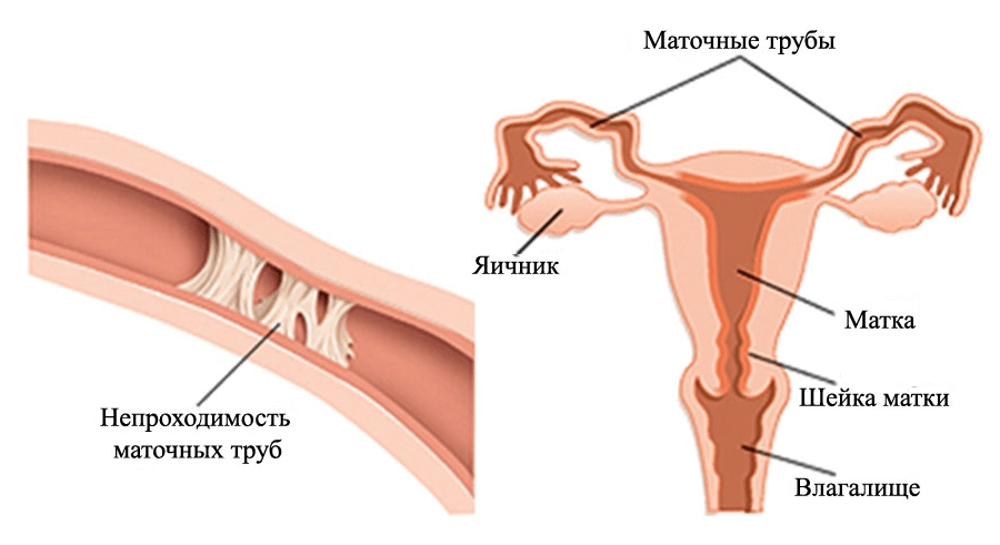 Таким захворюванням є сальпінгоофорит (аднексит) — запалення маткових труб (сальпінгіт) і яєчників (оофорит). У наслідок яких можливий розвиток спайок, що перешкоджають вільному проходженню заплідненої яйцеклітини через маткові труби. Адже в ході запалення придатків можливий розвиток гідросальпінкса — накопичення серозної рідини в каналі маткової труби.